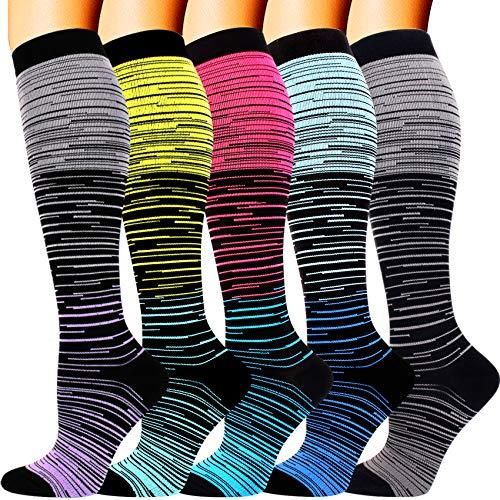 5 Pairs Compression Socks for Men Women 20-30 mmHg for Running Nurses Flight Pre