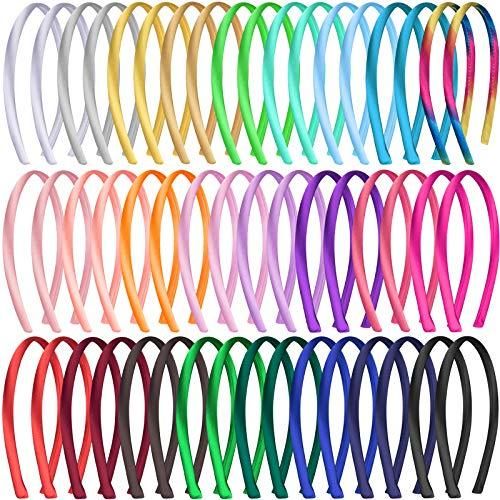 Duufin 50 Pieces Satin Headbands 1 Centimeter DIY Headband Colorful Satin Coverd