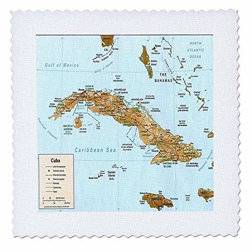 3dRose キューバの地図プリント - キルトスクエア、15.24cm x 15.24cm qs_205044_2