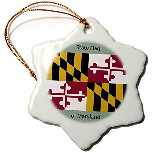 3dローズSandy Mertensメリーランド州??状態フラグのメリーランド州??Ornaments 3 inch Snowflake Porcelain O