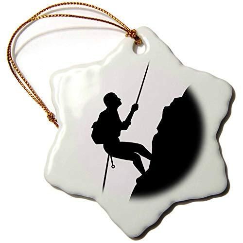 3dRose Russ Billington Designs - ロッククライマーのブラックとホワイトのシルエット - 山登り - オーナメント 3 inch