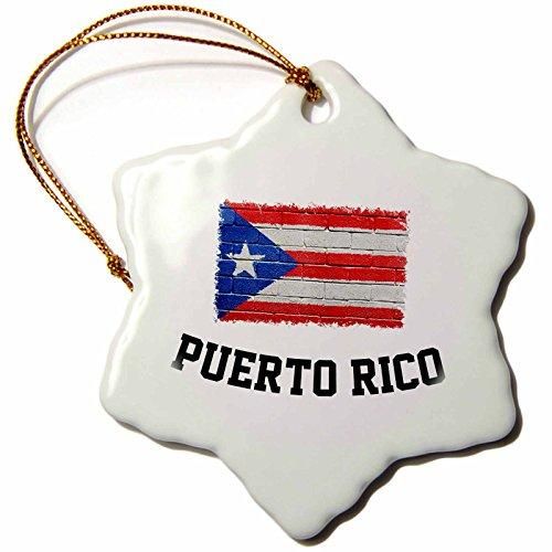 3dRoseプエルトリコ アンティーク調フラッグ レンガの壁 雪の結晶 オーナメント 3インチ