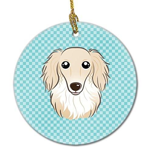 チェッカーボードブルーLonghair Cremeダックスフントセラミックオーナメントbb1150co1