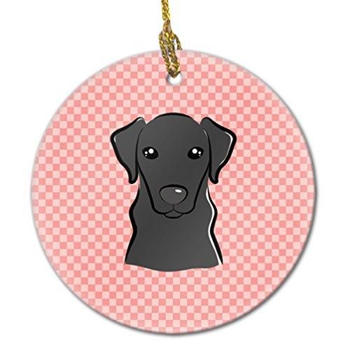 CheckerboardピンクブラックLabradorセラミックオーナメントbb1235co1