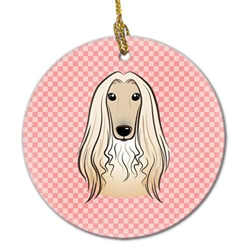 CheckerboardピンクAfghan Houndセラミックオーナメントbb1244co1