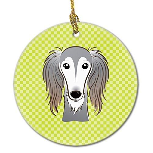 チェッカーボードライムグリーンSalukiセラミックオーナメントbb1291co1