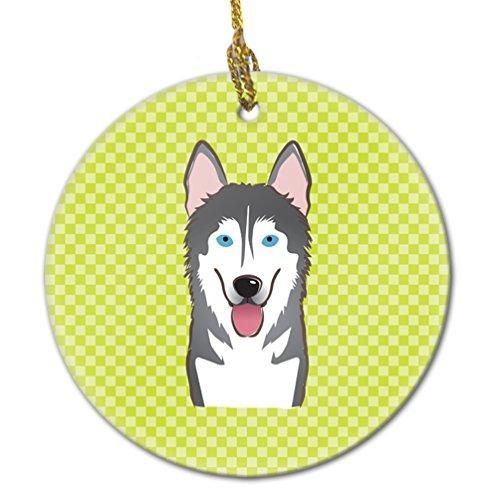 チェッカーボードライムグリーンAlaskan Malamuteセラミックオーナメントbb1280co1