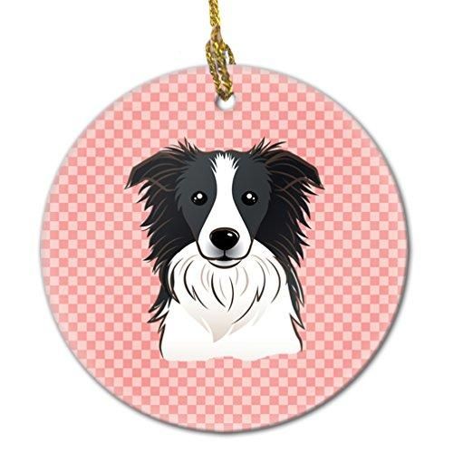 Checkerboardピンクボーダーコリーセラミックオーナメントbb1241co1