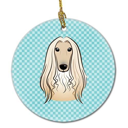 チェッカーボードブルーAfghan Houndセラミックオーナメントbb1182co1