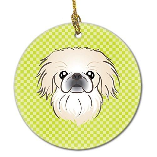 チェッカーボードライムグリーンペキニーズセラミックオーナメントbb1283co1