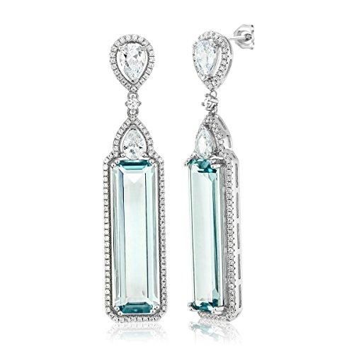 Gem Stone King バケット 合成 アクアマリン シルバー925純銀 ホワイト CZ ぶら下がりピアス