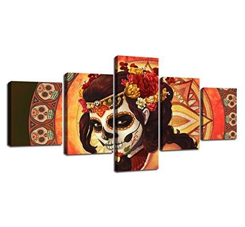 Suger Skull Girl Dead面キャンバスの絵画5パネル 50''Wx24''H