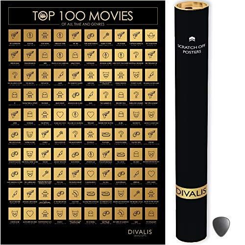 100枚の映画スクラッチオフポスター - トップフィルム・オブ・オールタイムバケットリスト - 24 x 16インチ フレームに入れやすい スクラッチ可能なシネ
