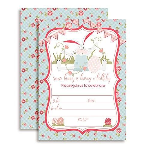 Bunny Birthday Party Invitations for Girls Ten 13cm x 18cm Fill In Cards with Fl