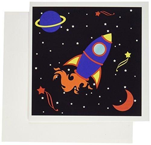 Janna Salak Designs Outer Space??キュートブルーBoy Cute Rocket Ship in Space??グリーティングカー