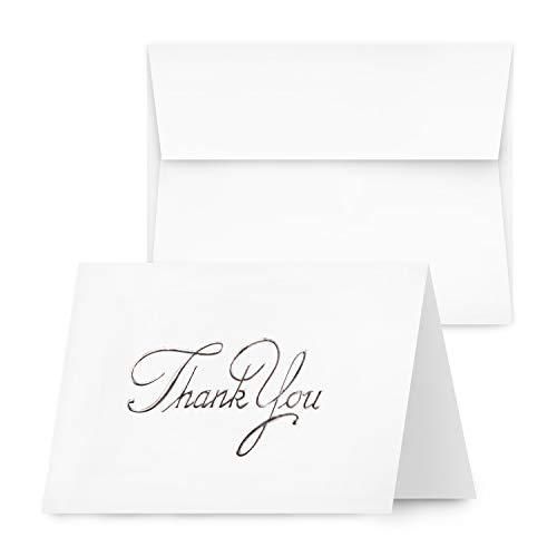 封筒付きサンキューカードホワイトの空白ホイルスタンプ 3.5 x 5インチ 折りたたみ時 65ポンド 176gsm カード25枚と封筒25枚 A1