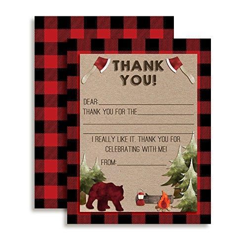 素朴なLumberjack Thank You Notesキッズ用、10個4? x 5.5?塗りつぶし空白のカードwith 10ホワイト封筒by amandac