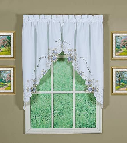 今日のカーテンVerona Reverse刺繍ウィンドウSwag、38-inch、ホワイト/ブルー