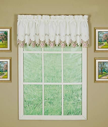 今日のカーテンVerona Reverse刺繍飾り布、14インチ、Ecru /ローズ