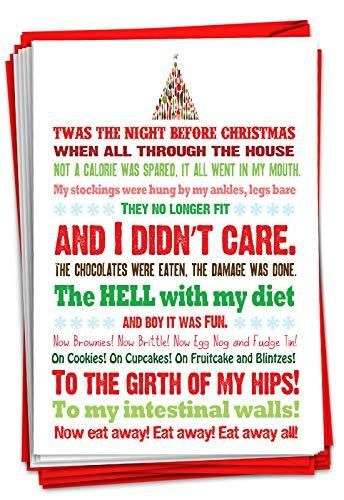 12 'Twas the Bite Before' ボックス入りクリスマス陽気なグリーティングカード 4.6 x 6.75インチ メリークリスマスノートカード