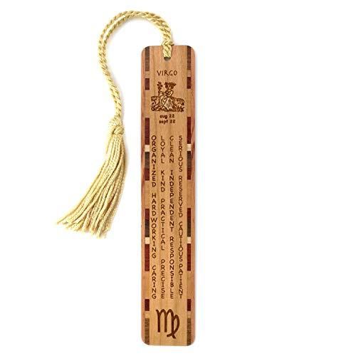 Virgo Zodiac Signアートワーク、正性格刻印木製ブックマークInlays and Tassel??カスタマイズバージョンも使用可能??検索b074