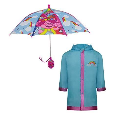DreamWorks Kids Umbrella and Slicker Trolls Poppy Rainwear Set for Girls Red/Bue
