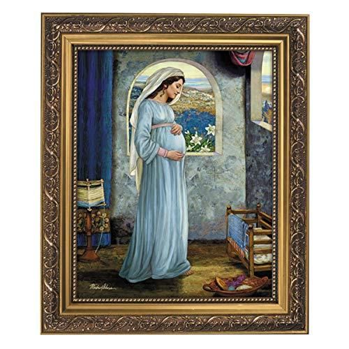 妊婦の聖母マリア 神の母プリント 華やかなゴールド調フレーム入り 13インチ