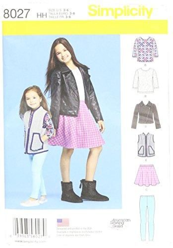 Simplicity 8027 子供 女の子 ジャケット トップス スカート レギンス 裁縫パターン サイズ3〜6