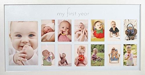 Baby's First Year Frame in Elegant White Natural Wood - My First Year Baby Pictu