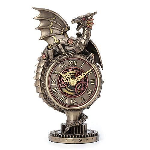 Veronese Design 10.25インチ スチームパンク 機械式ドラゴン トップクロックギア スタンド アンティークブロンズ仕上げ 彫刻 卓上像