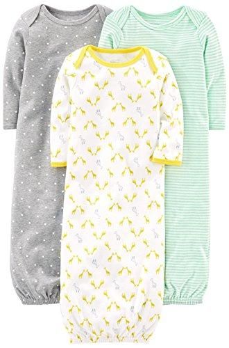 Simple Joys by Carter's シンプル ジョイズ バイ カーターズ ベビー コットン スリーパー ガウン ロンパース 3枚組 グレー/グリーン