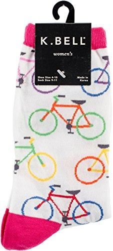 K。BellレディースカラフルBikes onホワイトレディースクルーソックスサイズ 9??11
