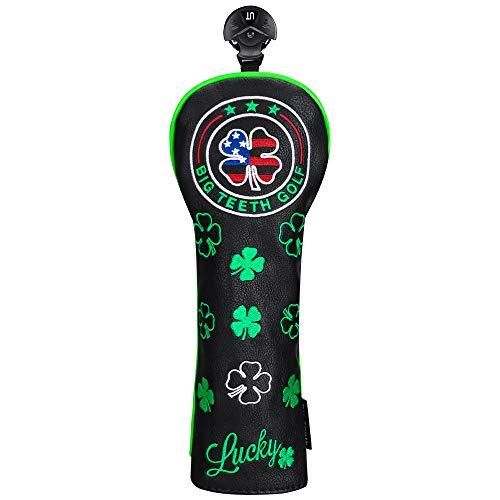 Big Teeth ゴルフヘッドカバー ドライバーハイブリッドフェアウェイカバー ゴルフクラブプロテクター ラッキークローバー USAパターン ブラック ハイブ