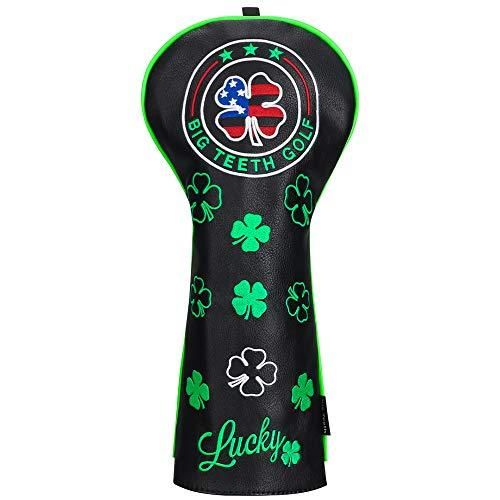 Big Teeth ゴルフヘッドカバー ドライバーハイブリッドフェアウェイカバー ゴルフクラブプロテクター ラッキークローバーとUSAパターン ブラック ドライ