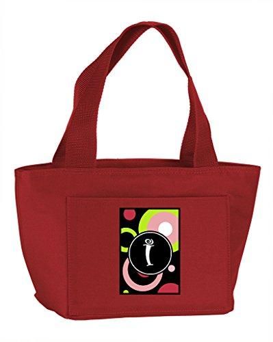 Caroline's Treasures AM1002-I-RD-8808 レター I モノグラム レトロ ブラック ジッパー 断熱 学校 洗濯可能 スタイリッ