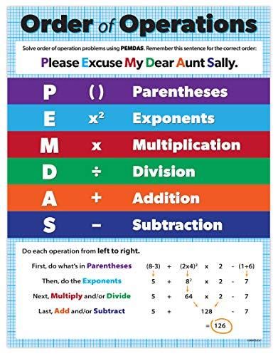 PEMDASポスター - 中学校数学ポスター - 作戦順ポスター - 中学校数学教室ポスター - 中学校用数学ポスター ラミネート加工 - 17 x 22インチ