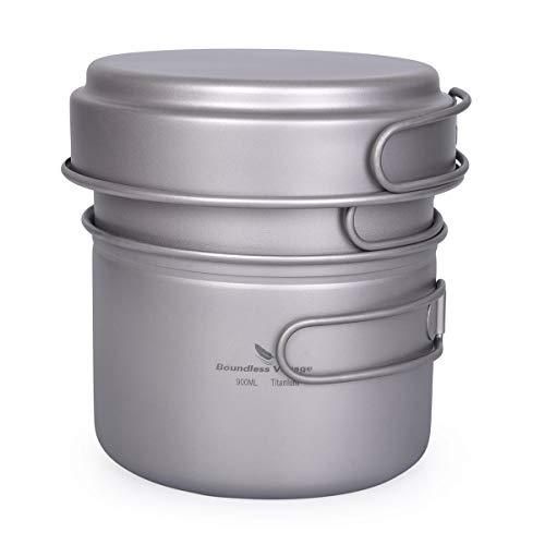 usharedo Titanium Pot Pan Set with Folding Handle Outdoor Camping Soup Pot Bowl