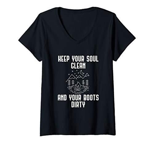 Womens Keep Your Soul Clean And Your Boots Dirty Camper Gift V-Neck T-Shirt