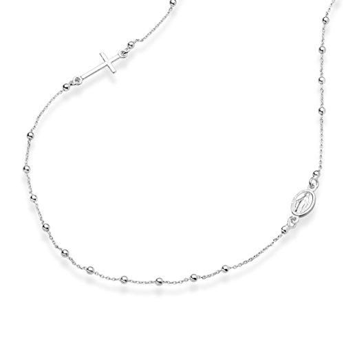 MiaBella 925スターリングシルバー イタリアンロザリオビーズ 横向き クロスネックレス リンクチェーン 16 18 22インチ レディース ティーン