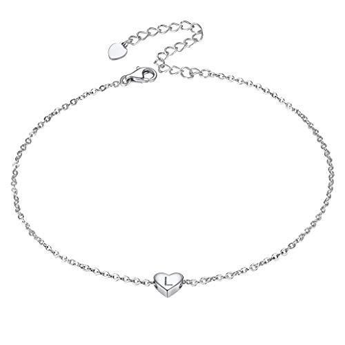 Silvora スターリングシルバー イニシャルアンクレット レディース ティーンガールズ フットアンクルブレスレット アルファベットアンクレット 調節可能なチ