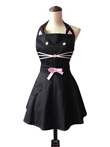 Love Potato かわいい蝶結び 漫画 猫顔 エプロン レディース キッチン レストラン レディース クッキングエプロン 調節可能な首付き レディース ガ
