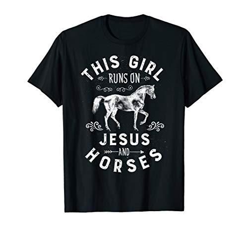 This Girl Runs On Jesus And Horses T Shirt Horse Women Gifts