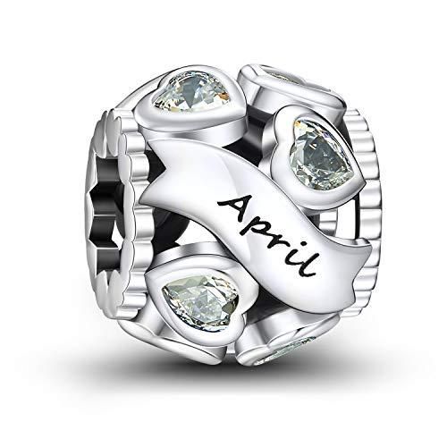 NINGAN 誕生石チャーム ブレスレット用 925スターリングシルバー 透かし細工ビーズチャーム ブレスレットやネックレスに 誕生日の贈り物に