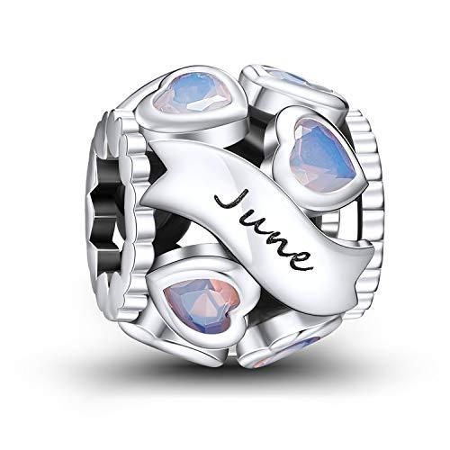 NINGAN 誕生石チャーム ブレスレット用 925スターリングシルバー 透かし細工ビーズチャーム ブレスレットやネックレスに 誕生日の贈り物に