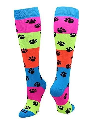 ネオンレインボー 楽しいプリント ふくらはぎまで覆う靴下 M ピンク