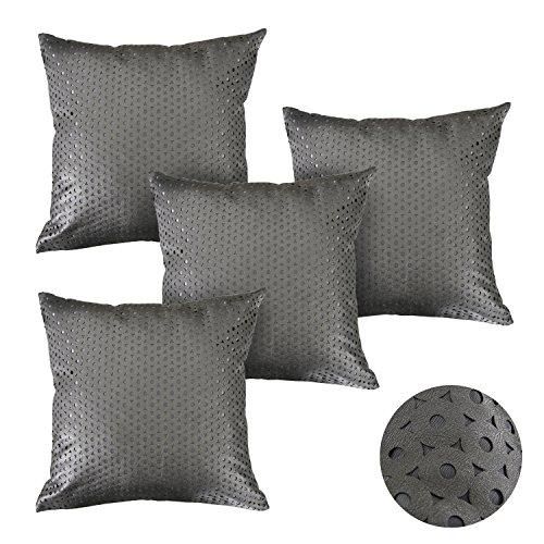 Deconovo Cushion Covers Circles Perforated Patter Solid Faux Leather Pillow Case