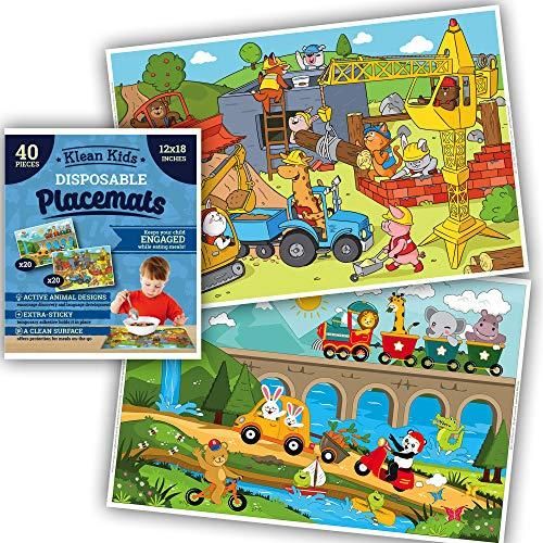 Animals On-The-Go Plastic Disposable Placemats for Boys Baby Toddler Kids - Neat