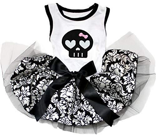 Petitebella Cutie Black Skull Face Puppy Dog Dress White/Damask X-Large