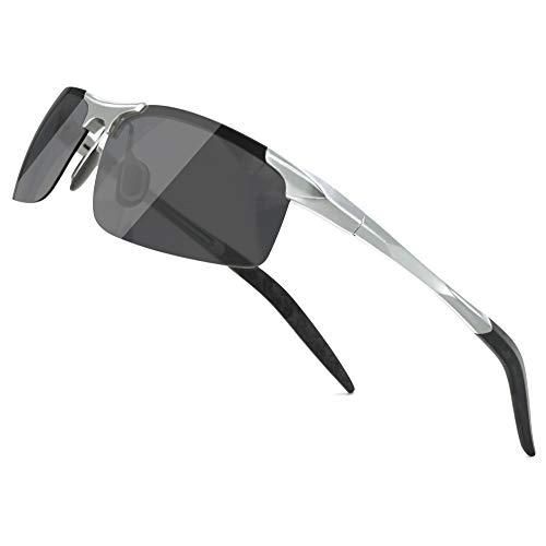 SUNGAIT メンズ HD 偏光サングラス ドライブ 釣り サイクリング ランニング メタルフレーム UV400 シルバー、グレー