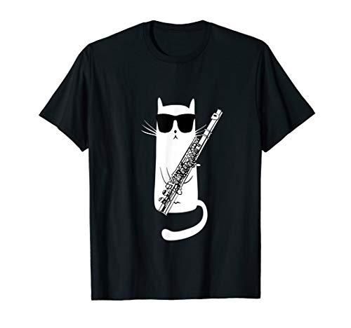 Funny Cat Wearing Sunglasses Playing Flute T-Shirt